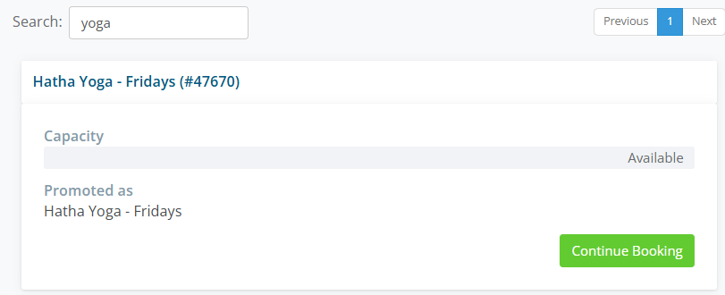 4. In Search enter the Activity Name and then select Continue Booking