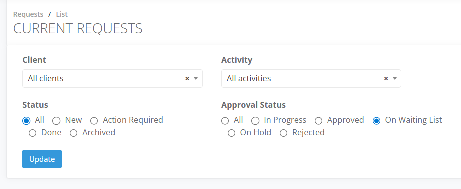 Filter by Approval Status > On Waiting List