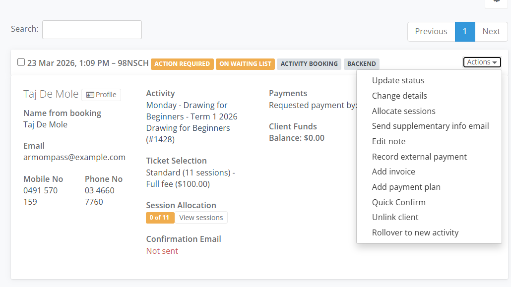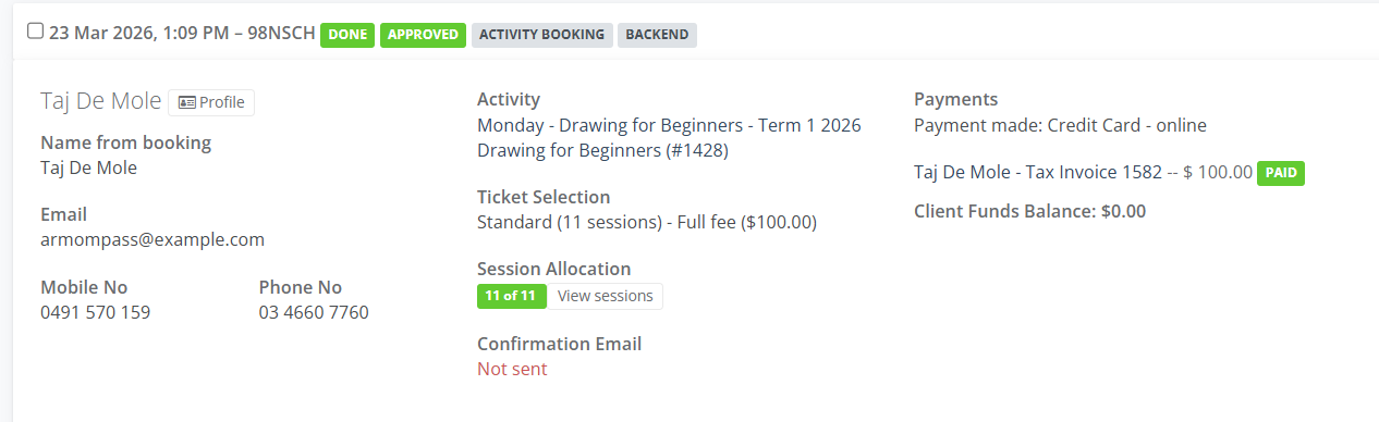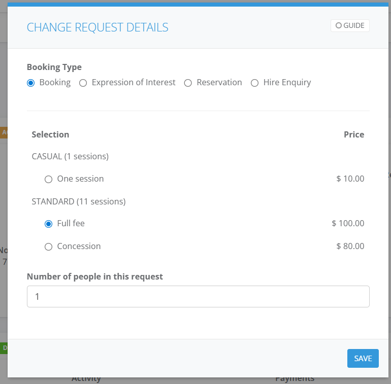 In the Change Requests Details window in the Booking Type select Booking. Choose the Ticket eg. Full Fee and Save