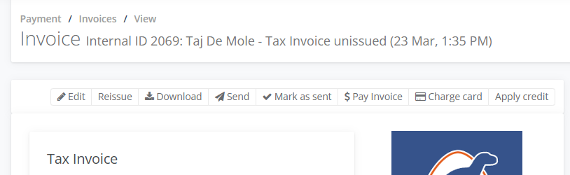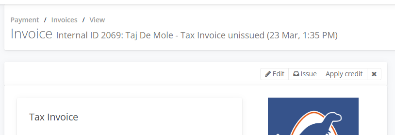 6. Select on the Invoice, move your cursor and click on Tax Invoice unissued