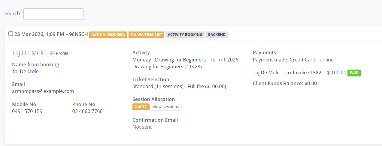 11. In Session Allocation, select on View Sessions eg. 0 of 11 and allocate to all the Sessions so they are assigned to the Attendance Sheet.