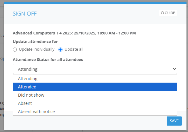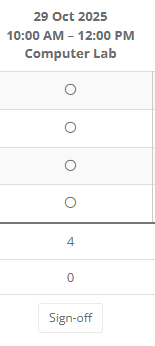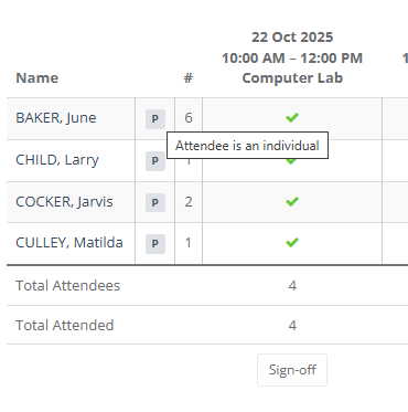 If you select on the Sign-off the window will display. This date stamps when the attendance sheet was marked.