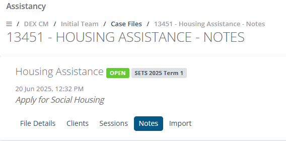 Name Give the case a descriptive title (e.g., Housing Assistance).