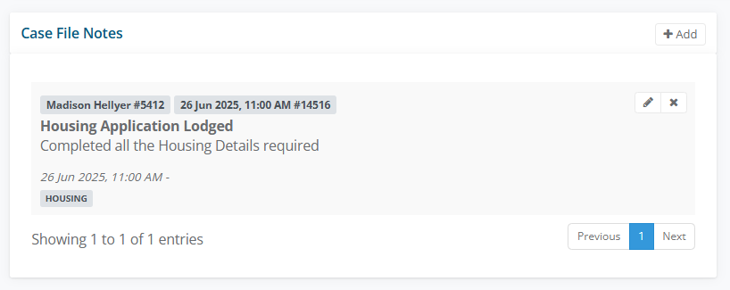 Case File Notes History will be displayed. Select on pencil to edit or x to delete