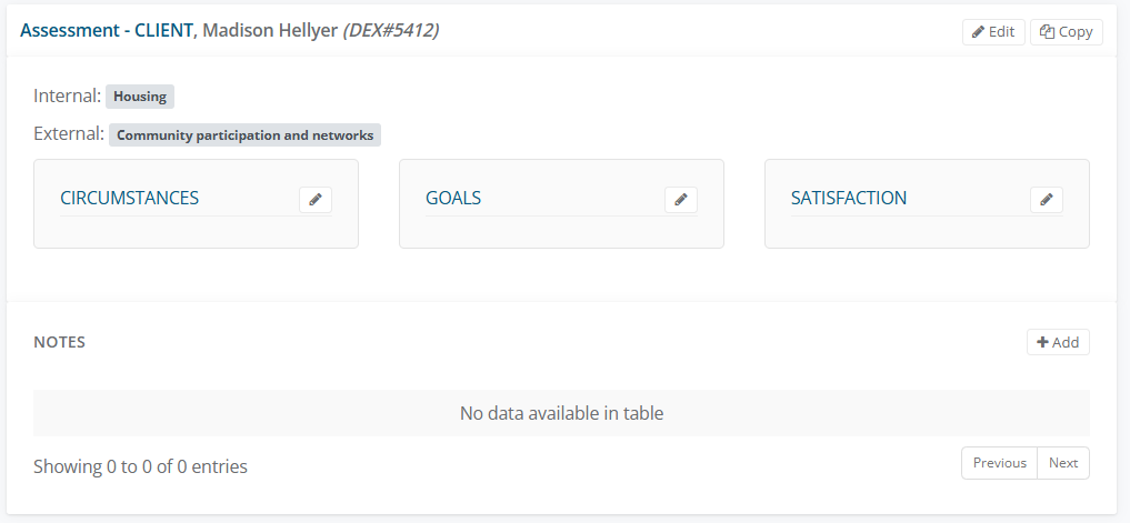 In the Participants pane labels will show R - Referral (Blue means Complete), C - Circumstances, Goals and Satisfaction (Red means yet to complete)