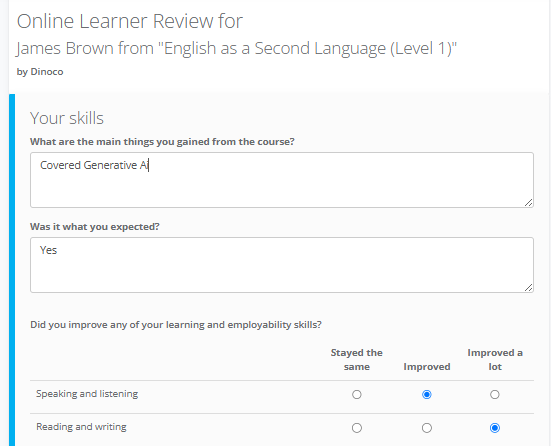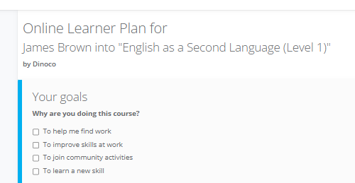 Requesting students to complete the Learner Plan and Learner Review as a way to collect and track the learner’s goals, expectations and reflections essential as a Learn Local provider in meeting the Pre- Accredited Quality Framework.