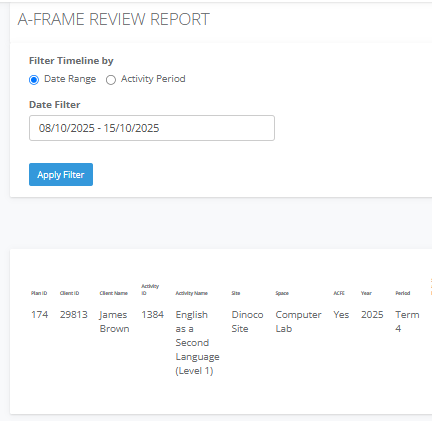 11. Go to Education > Reports and Student A-frame Review or Summary