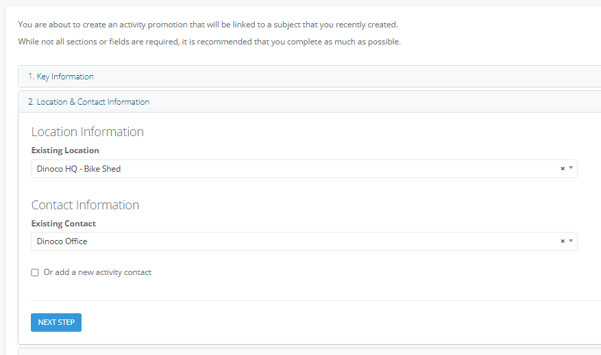 3. Enter the Location & Contact Details