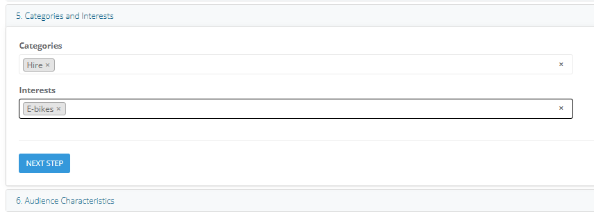 7. Select the Categories and Interests