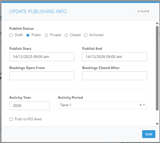 16. Select on Details tab and Edit Publishing. Enter a Publish Start and End Date