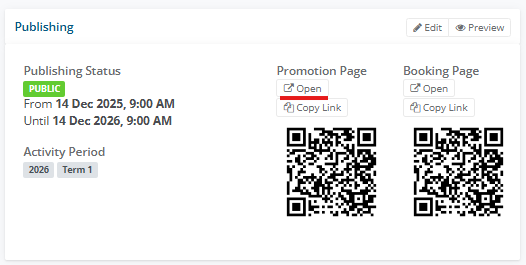17. Select on Open in the Promotion Page and review