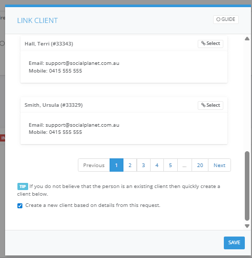 24. If they're new and don't exist on your database select Create a new client based on details from this request