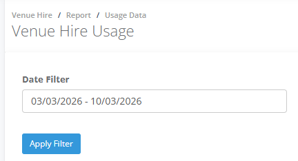 The Venue Hire Usage Report is a critical tool for cross-checking booking data before raising a monthly venue hire invoice. It allows you to audit usage across specific date ranges to ensure billing accuracy for your clients and entities.